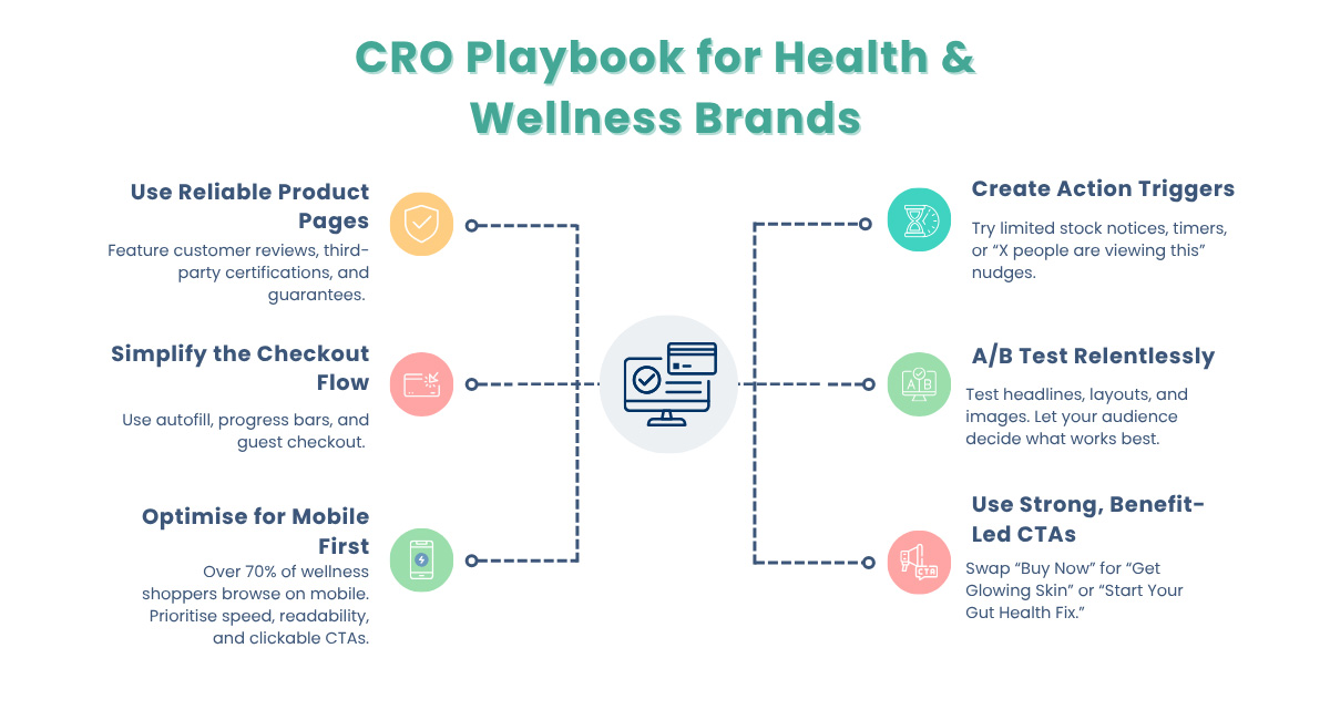 To improve sales in the health and wellness e-commerce space, it’s important to grasp the fundamentals of conversion rate optimisation strategies. CRO focuses on enhancing various elements of your website to turn visitors into customers. Whether you are selling supplements, fitness equipment, or natural beauty products, your website’s design, user experience, and content need to guide users seamlessly toward making a purchase.