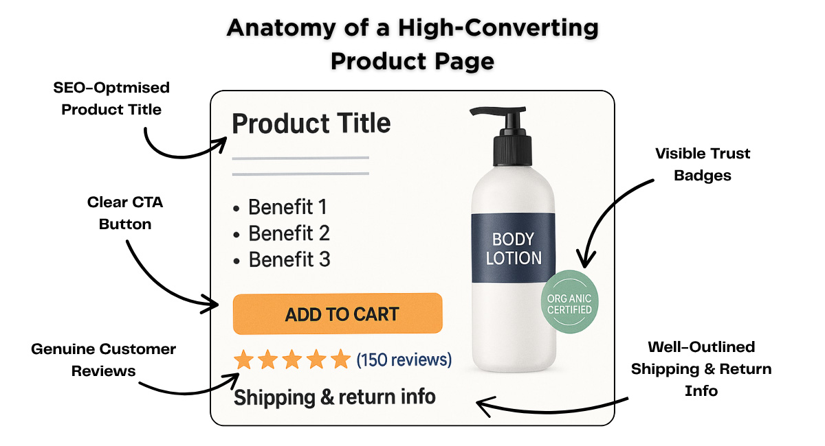 Each product page should be optimised not only for SEO but also for conversions. Incorporate customer reviews, trust signals (such as certifications), and clear calls-to-action (CTAs). When users trust your brand, they are more likely to complete a purchase. Additionally, optimise page load speeds, as slow-loading pages lead to higher bounce rates.