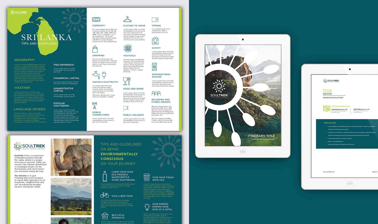SoulTrek Travel is a destination management company that offers handcrafted journeys through Sri Lanka that encourages you to leave a meaningful impact on the destinations and communities encountered along the way. Soul + Trek = Shifting perspectives through life-enriching journeys. We were required to create an identity that encompasses the story of the brand name.